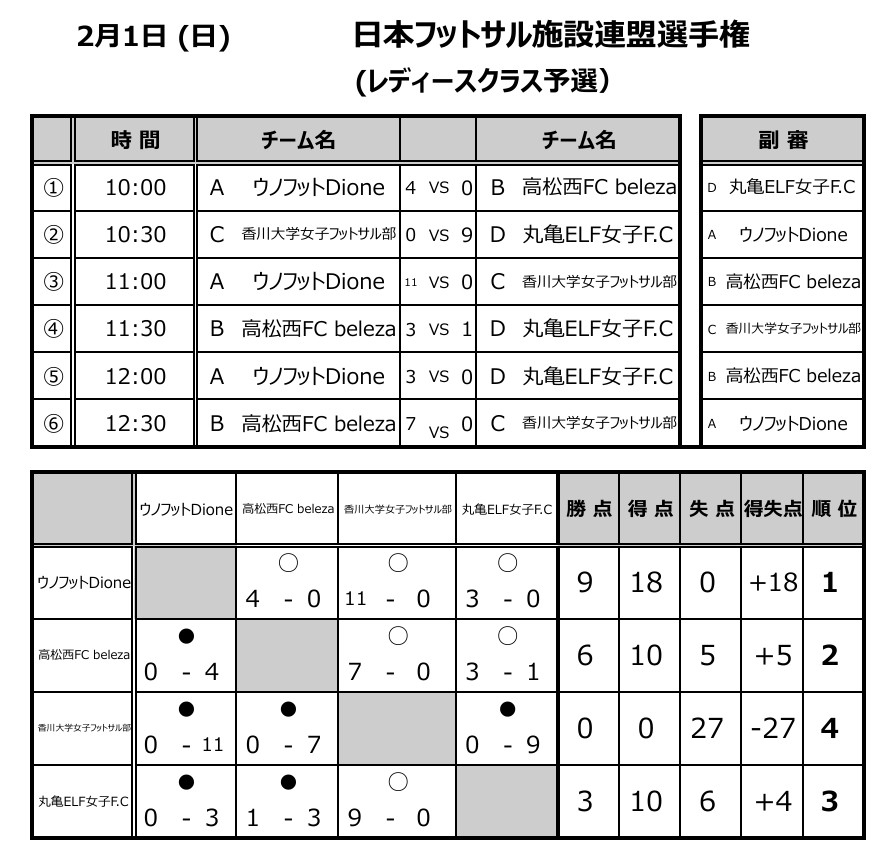 全国大会出場を決めたのは「ウノフットDione」と 「高松西FC beleza」 の2チームとなりました。 おめでとうございます!! 全国大会での活躍を期待しています!!